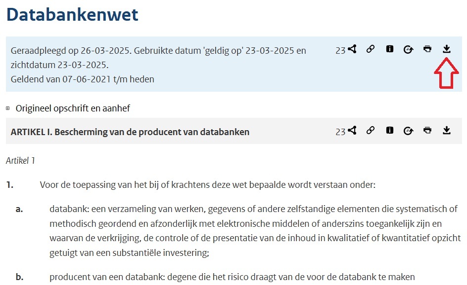 Beschrijving: Uitvoeren stap 02 download wettekst selecteren. De wettelijke tekst staat op de website wetten overheid